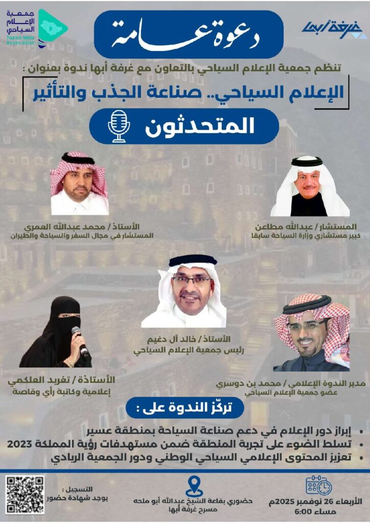 بالتعاون مع غرفة أبها ندوة بعنوان: “الإعلام السياحي.. صناعة الجذب والتأثير”